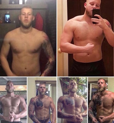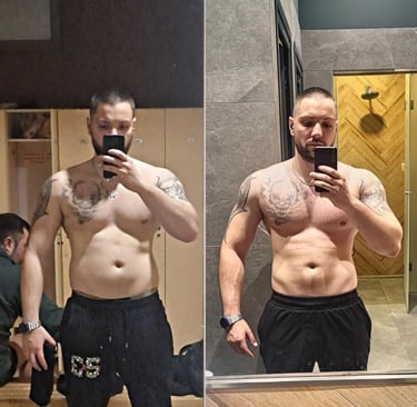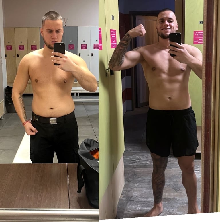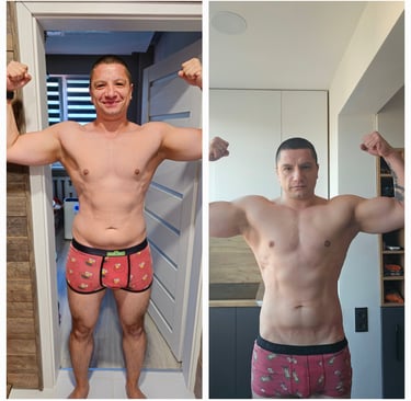 Всички трансформации, които виждаш по-долу, са резултат от индивидуална работа с мен – персонализирани тренировки и хранителни режими, плюс постоянна подкрепа.