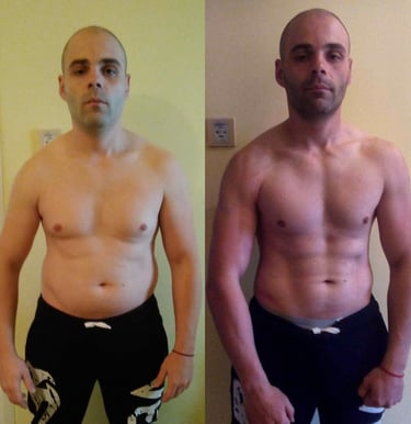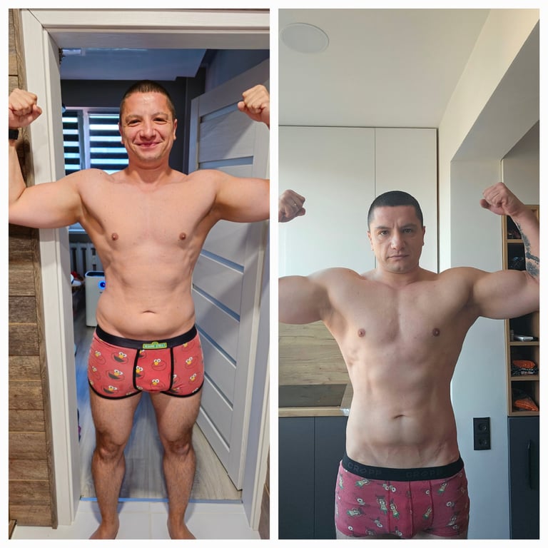 Ивайло – Видима промяна чрез месечен 1:1 онлайн коучинг: по-малко мазнини, повече мускул и сериозен скок в силата. Най-ценното – научи се сам да планира тренировките и храненето си (калории и макроси)